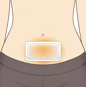 帯のすぐ下や、締め付けが強い部分にカイロを貼ると